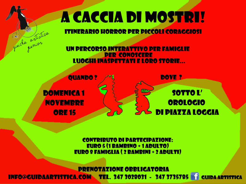 In questo primo e originale percorso per famiglie andremo insieme a caccia di mostri: noi non ce ne accorgiamo, ma tutti i giorni, nascosti in tanti angolini delle strade e delle piazze di Brescia, sono rintanati un sacco di mostri che ci guardano dall’alto col loro ghigno feroce! Ma niente paura! Grazie ai giochi di Guida Artistica, li scoveremo dalle loro tane, racconteremo la loro storia e li renderemo inoffensivi!