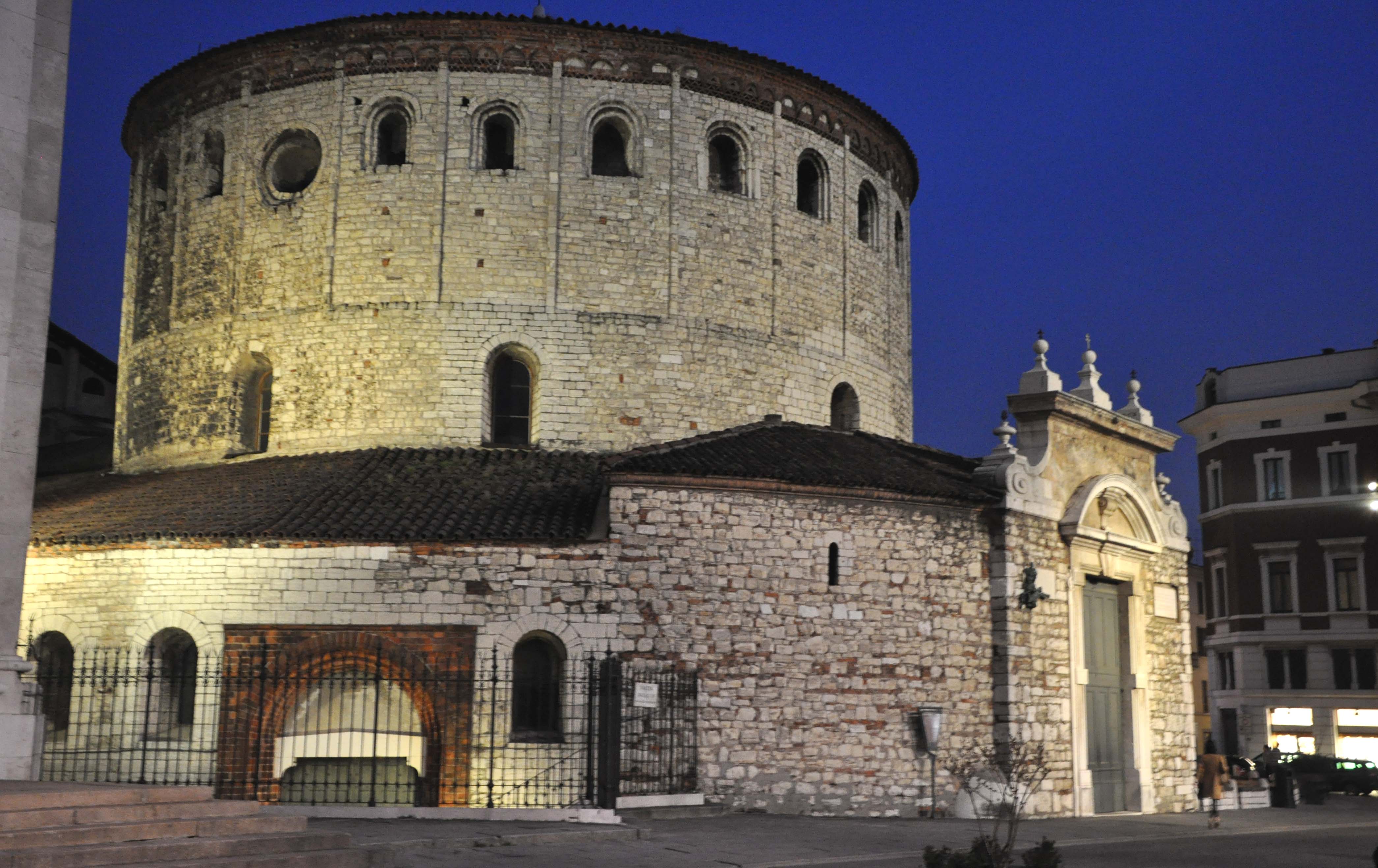 Citato in ogni manuale di storia dell’arte italiana, il Duomo Vecchio o Rotonda è uno splendido esempio di architettura romanica, evidenziata nelle sue linee sobrie ed essenziali da un accurato restauro ottocentesco volto a recuperare la purezza delle linee originarie in un edificio che ci mostra tutt’oggi numerose stratificazioni a partire dall’epoca romana.