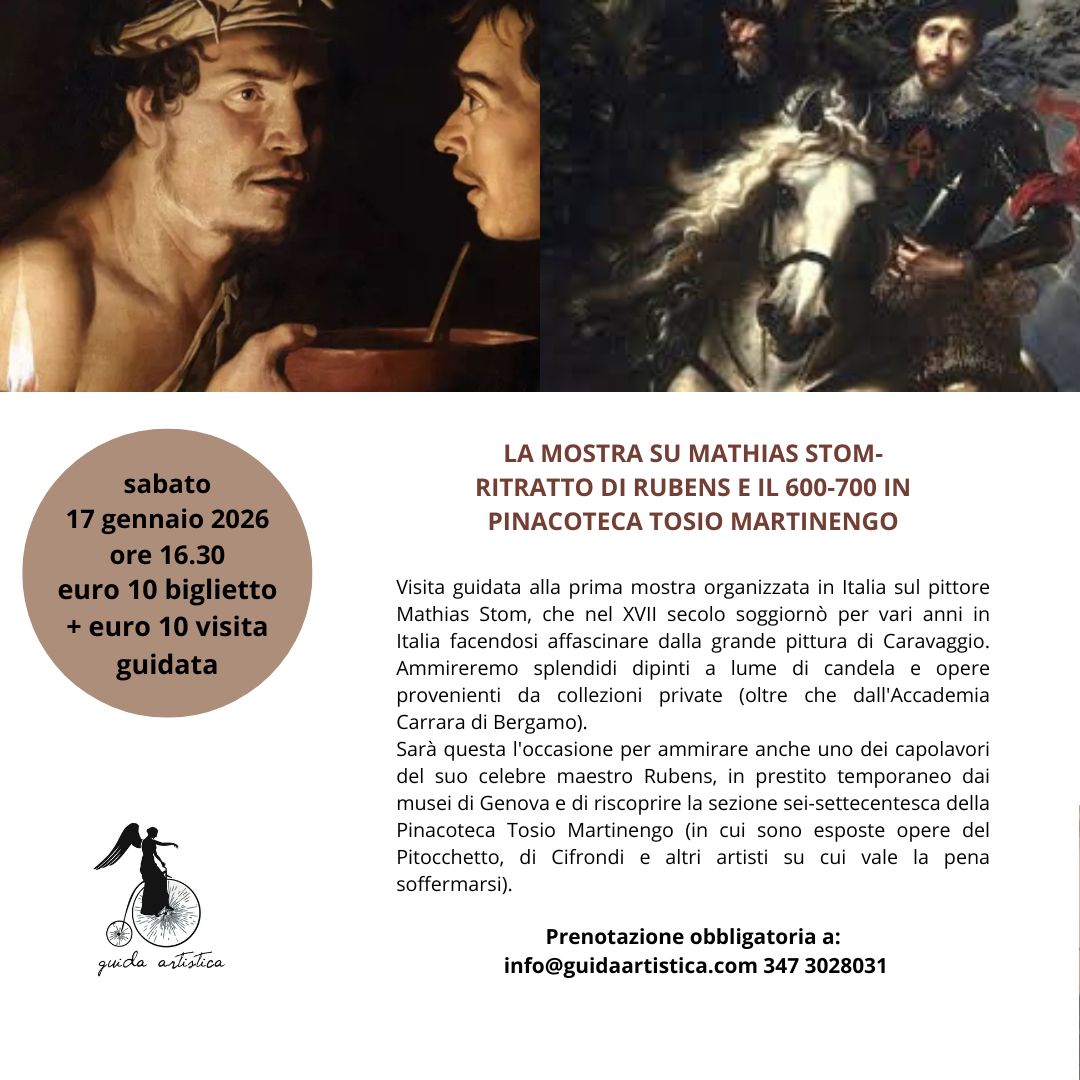 Visita guidata alla prima mostra organizzata in Italia sul pittore Mathias Stom, che nel XVII secolo soggiornò per vari anni in Italia facendosi affascinare dalla grande pittura di Caravaggio. Ammireremo splendidi dipinti a lume di candela e opere provenienti da collezioni private (oltre che dall’Accademia Carrara di Bergamo).
